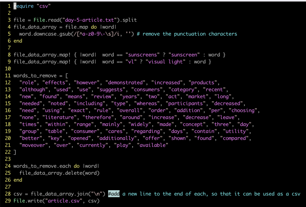 I created a small ruby script to manipulate the data, that I’ll also include here:
