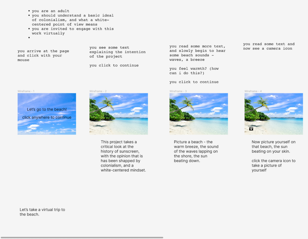 Sunscreen Project Development: Storyboard / wireframes / ideas